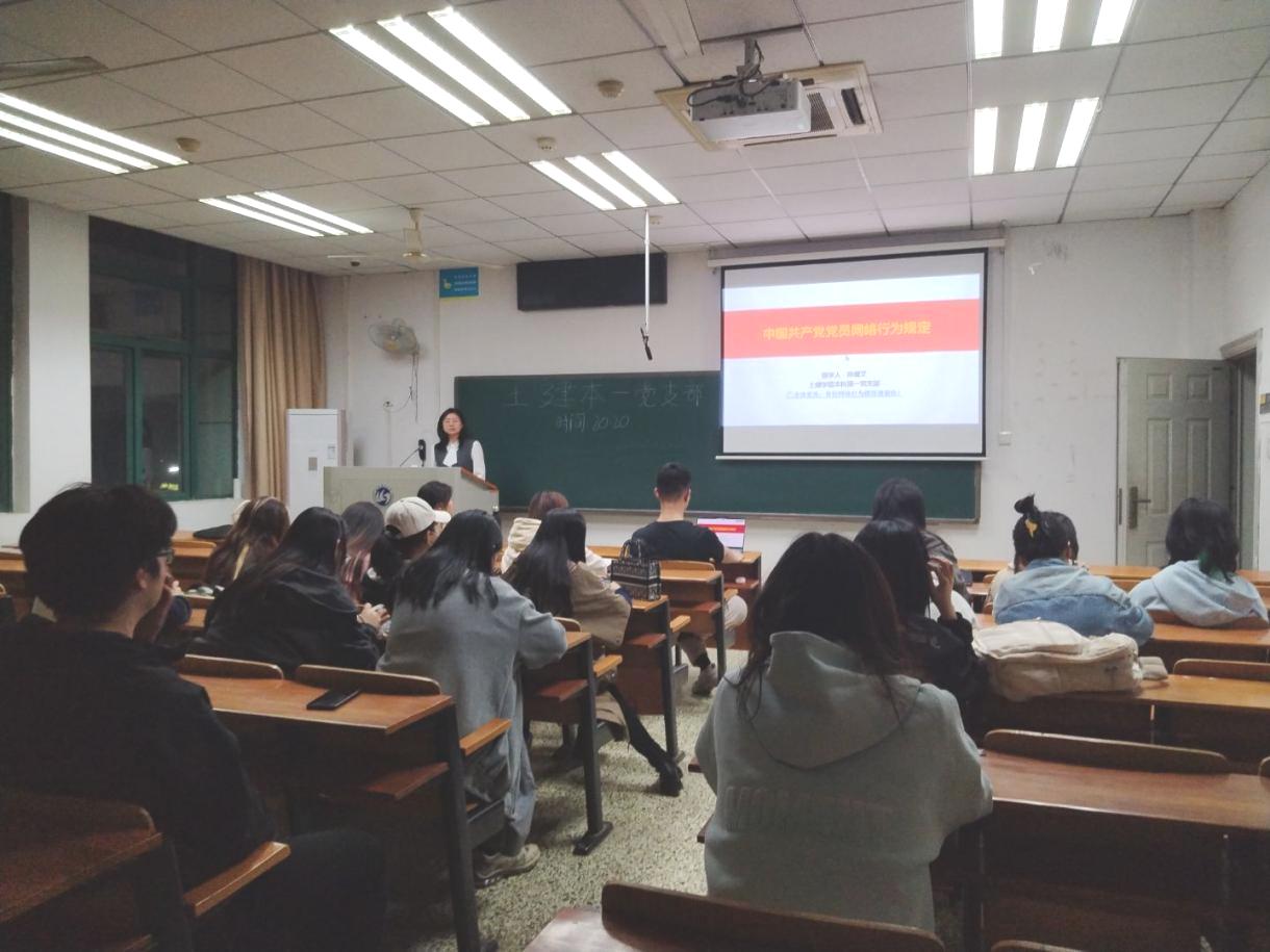 为进一步增强党员纪律意识,3月23日晚,学院本科第一党支部在南湖新三教学楼209教室组织开展了《戒尺(二)》专题学习活动,会议由支部副书记张思宇同志主讲,支部成员通过线上线下相结合的方式全员参与。